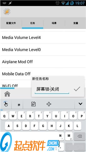 點(diǎn)擊「任務(wù)」頁(yè)面右下角「+」,新建名為「屏幕鎖-關(guān)閉」的任務(wù);