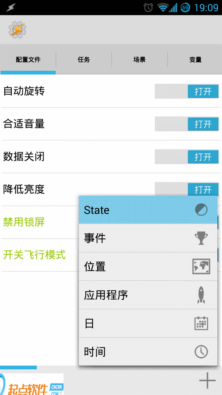 步驟一:配置,設(shè)定你的情境條件首先一進(jìn)入「Tasker」,會(huì)看到有一個(gè)「配置文件」的頁(yè)面,這里其實(shí)就是讓你「建立(要觸發(fā)自動(dòng)反應(yīng)的)情境條件」。可以設(shè)定手機(jī)感應(yīng)器、特殊時(shí)間點(diǎn)、插上特殊裝置、電池狀態(tài)等等各種條件。