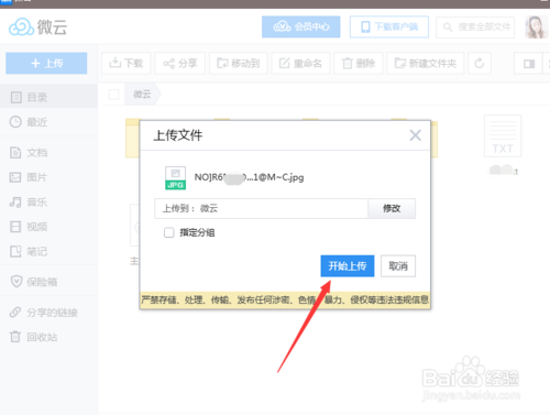 6、然后點(diǎn)擊“開始上傳”