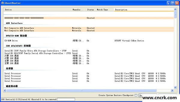 GhostBuster是一款未知設(shè)備管理工具。用來檢索和查看系統(tǒng)上的未知硬件設(shè)備,并且找到匹配的驅(qū)動(dòng)或者刪除無效項(xiàng)目的工具