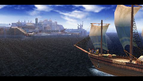 在阿爾塔戈附近的美德海域,阿爾塔戈公國的正規(guī)軍——龍騎士團的艦艇與亞特魯所乘坐的商船擦肩而過,同時亞特魯與多奇也在船上眺望到了遺跡島的景象。