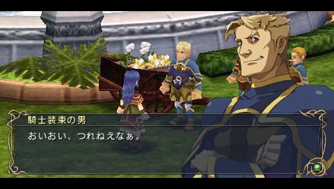 隨便逛逛后回到廣場,發(fā)現(xiàn)公國龍騎士團的勞德千龍長正在找緹雅的麻煩,這時賣花的小女孩跑過來想要幫助緹雅。從緹雅對她的稱呼來看,小女孩的名字叫做瑪婭。勞德將小瑪婭抓了起來,準備教訓(xùn)一番。豆子心想有人調(diào)戲自己未來的后宮,不能不出這口惡氣,于是叫了多奇上前平事(客觀來說是路見不平拔刀相助)。沖動是需要付出代價的,勞德以疑似羅門帝國間諜的罪名將二人逮捕起來。多虧了亞特魯和多奇背黑鍋,緹雅和瑪婭逃過了一劫。