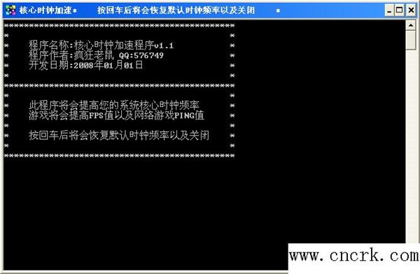 降ping工具是核心時(shí)鐘加速程序。降ping工具將會(huì)提高系統(tǒng)核心時(shí)鐘頻率,游戲?qū)?huì)改善fps值以及網(wǎng)絡(luò)游戲ping值。降ping工具按下回車即可使用