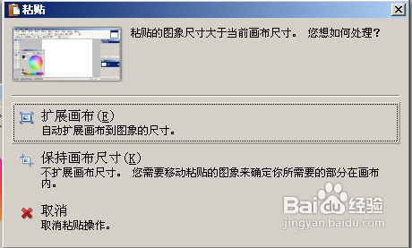 2.然后直接粘貼到Paint里,由于粘貼的圖片與Paint的畫布尺寸大小不一致,系統(tǒng)會提示是否擴(kuò)展畫布