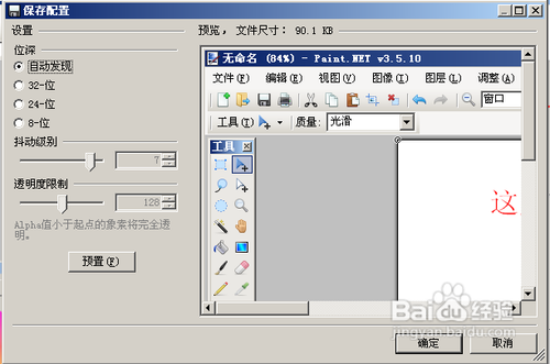 8.保存這里可以選擇圖片的質(zhì)量設(shè)置,位數(shù)越高,圖片的大小越大。點(diǎn)擊確定后文件將保存。至此一張圖片編輯完成