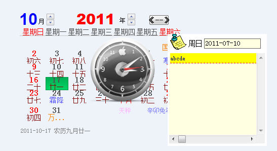 易達(dá)時鐘桌面日歷是一款集桌面時鐘、桌面日歷于一身的桌面時鐘日歷軟件。易達(dá)時鐘桌面日歷內(nèi)含農(nóng)歷,陽歷轉(zhuǎn)換節(jié)氣星座查詢,超強(qiáng)的便簽貼紙功能,半、整點語音報時功能,并提供黃歷查詢(黃道吉日)日歷、月歷、倒計時時鐘、快速提醒、備忘錄、語音半、整點報時,節(jié)假日自動提醒等,強(qiáng)大的不是一點點。