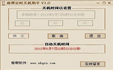 南幫定時(shí)關(guān)機(jī)助手可根據(jù)你的設(shè)置對(duì)你的電腦進(jìn)行定時(shí)關(guān)機(jī)。軟件綠色,小巧,無(wú)毒,請(qǐng)放心下載。