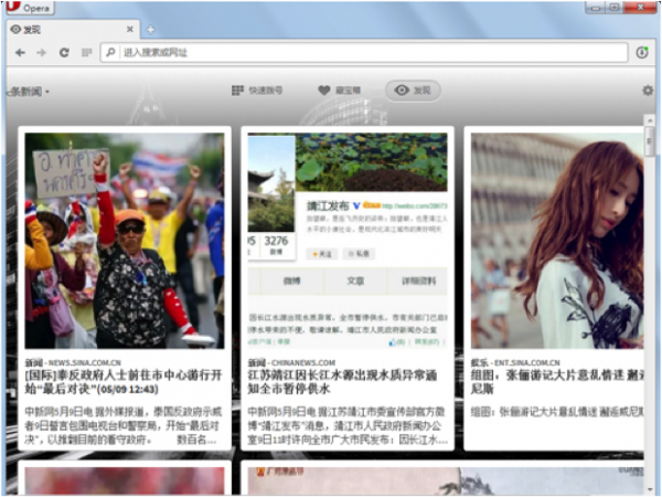 早在公元前6000年,挪威人就已踏上了探索世界的征程,如今,同樣來自挪威的歐朋將探索精神釋放到互聯(lián)網(wǎng)世界——在Opera 桌面瀏覽器新增中文版“發(fā)現(xiàn)”功能。用戶點擊瀏覽器首屏的“發(fā)現(xiàn)”按鍵,即可隨時查看國內(nèi)外熱門資訊,覆蓋科技、娛樂、健康、商業(yè)等13個不同領域。
