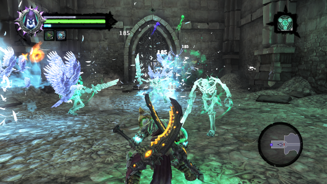 劇情發(fā)生在War被焦灼議會囚禁的期間,繼前作以天啟四騎士:瘟疫、戰(zhàn)爭、饑荒、死亡當中的“戰(zhàn)爭”為主角后,本作玩家將改以擔任最令人懼怕的角色“死亡”,游走在光明與黑暗的境界中,試圖救贖前一代主角。當War重返地球的時候已是一百年后,人類早已滅絕。War后來發(fā)現自己其實是被焦灼議會陷害的,而Destroyer就是天使長Abbadon墮落以后的樣子,因為焦灼議會預見到的墮落,但是只有四騎士才能殺死他,所以提前召喚出來了War(第七封印一直都是Abbadon在守護的)。War通過Sameal的指引,殺死了Destroyer選中的四位惡魔,來到了黑色王座,遇見了被囚禁的墮天使Azreal,在解救Azreal之后,墮天使Azreal帶領War去伊甸園,War因此得知了一切。然后War找回了末日審判之劍(用以破除封?。┑乃槠?,并且重鑄了劍。
