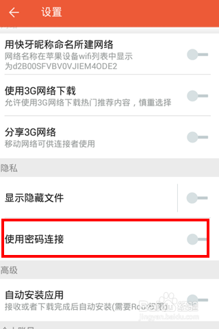 在隱私選項(xiàng)里面選擇 【使用密碼連接】
