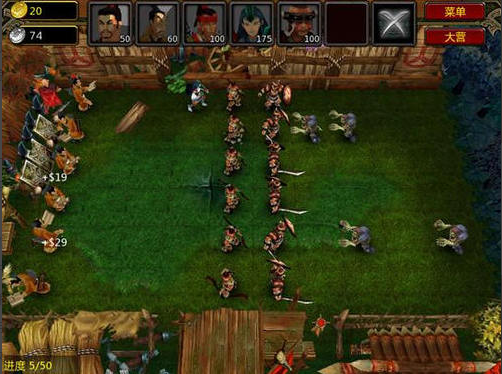 第一關(guān): 出來 直接造農(nóng)民,不要造弓箭手的,前面5關(guān)都有送支援的出兵的時(shí)候 當(dāng)兵走到第一格線的時(shí)候再造弓箭手 僵尸要打12下才能打死。記住早農(nóng)民不要造過頭了,免得沒有錢造弓箭手,如果你運(yùn)氣夠好,兵都刷在一條線上,恭喜你,你就可以安心發(fā)展經(jīng)濟(jì)了。一個弓箭能單挑贏一個僵尸,雖然會被打3下
