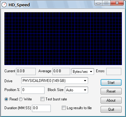 HD_Speed 是一款非常小巧好用的實時磁盤讀取速度測試軟件。它可以比較準確地測試到磁盤的持續(xù)傳輸率和突發(fā)傳輸率一定程度上反映系統(tǒng)的磁盤性能,可以測試軟盤、硬盤、光驅(qū)。并用曲線圖方式體現(xiàn)出來,用它可以很直觀的看出您的硬盤到底有多快而且也可以很方便的看出光驅(qū)的加速曲線。并且作為一款免費軟件,測試也相當簡單,大家有興趣可以測試一下自己的磁盤性能