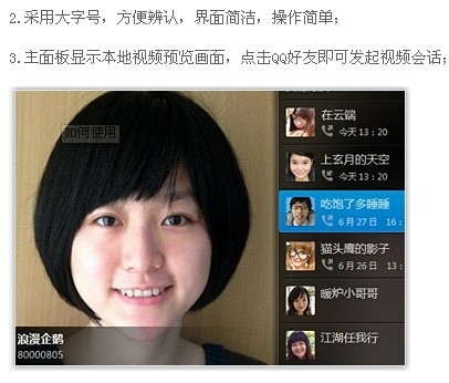 qq視頻桌面版 1.0 官方正式版 騰訊發(fā)布了QQ視頻桌面版1.0 beta,該軟件可以用QQ賬號登錄,輸入時可顯示密碼,實時輕松校對,采用大字號,方便辨認(rèn),界面簡潔,操作簡單,主面板顯示本地視頻預(yù)覽畫面,點擊QQ好友即可發(fā)起視頻會話。