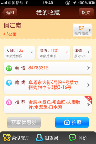 收藏最喜歡的餐廳到“飯夾”,方便實(shí)時(shí)打開;