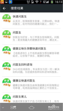然后輸入“快速問醫(yī)生”,然后點擊下面出現(xiàn)的“快速問醫(yī)生”綠色字體進入下一步