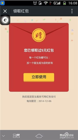 然后回到微信公眾號主頁面添加一個醫(yī)生,然后就會跳轉(zhuǎn)到領(lǐng)取頁面,然后點擊領(lǐng)取紅包即可,如下圖
