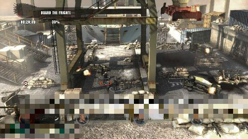 這關(guān)敵人聚集度很高,注意下,靈活一點(diǎn)。消滅敵人繼續(xù)前進(jìn),用二號(hào)放C4炸船,之后消滅余下雜兵,注意下直升機(jī)運(yùn)砍刀黨。消滅全員后通關(guān)。