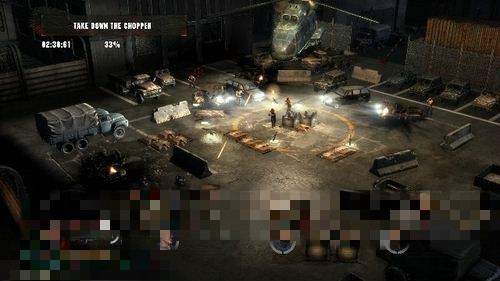 前進(jìn),中途有幾次伏擊,注意下。用二號(hào)開兩門,清兵,再消滅一輛裝甲車。之后前進(jìn)至直升機(jī)處,有大量伏兵與增援,建議在墻外一批一批的消滅,再?zèng)_進(jìn)去干掉直升機(jī)