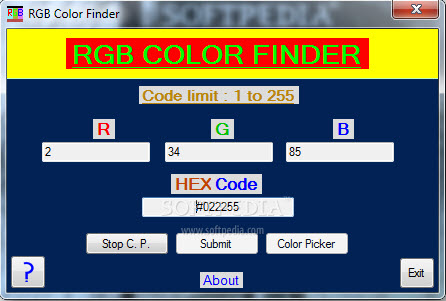 RGB Color Finder是一個實用的rgb顏色對照表軟件,可以預(yù)覽并且對比RGB顏色代碼。用法很簡單:輸入RGB和按“提交”。應(yīng)用程序?qū)⒘⒓达@示相應(yīng)的顏色到您的代碼。