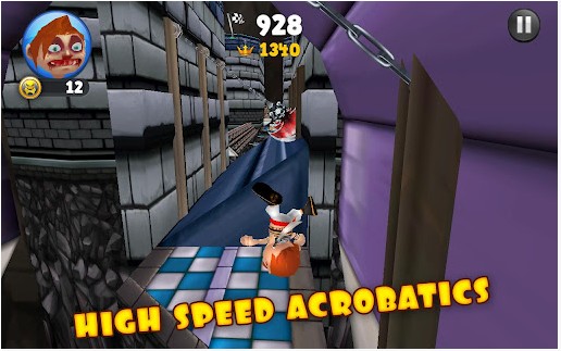 玩家通過(guò)重力感應(yīng)控制弗雷德左右移動(dòng),點(diǎn)擊屏幕則是跳躍,沿途還有加速裝置和金幣等小道具等你去收集,完成關(guān)卡后還會(huì)有技能獎(jiǎng)勵(lì)。游戲節(jié)奏緊張刺激,一路驚險(xiǎn)不斷,秉承重口味風(fēng)格。