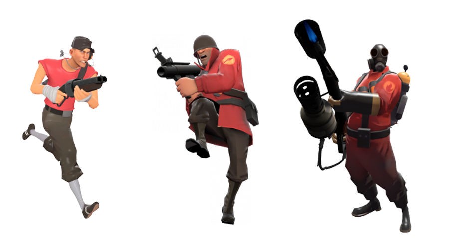 三種進攻型職業(yè)是偵察兵(Scout)、士兵(Soilder)及火焰兵(Pyro)。