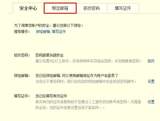 進(jìn)入安全中心頁面,點擊“綁定郵箱”;