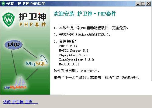 護(hù)衛(wèi)神PHP套件是一款自動(dòng)安裝配置php+mysql+phpmyadmin等web環(huán)境的軟件,適用于windows2003+iis,完全免費(fèi),讓您輕松在Windows服務(wù)器上配置PHP環(huán)境。
