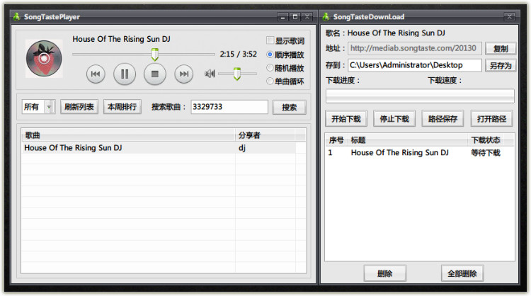 破解嗅探SongTaste下載的方法很多,但都過(guò)于麻煩,推薦 SongTastePlayer 這款專門針對(duì)SongTaste下載的小工具,可以試聽,搜索,顯示歌曲,和下載SongTastePlayer里面的音樂(lè)??旖萱I—— ”下一曲”:Ctrl+→ ; ”上一曲“:Ctrl+←SongTaste對(duì)外鏈讀取進(jìn)行限制,所以盡量避免對(duì)歌曲的頻繁切換。