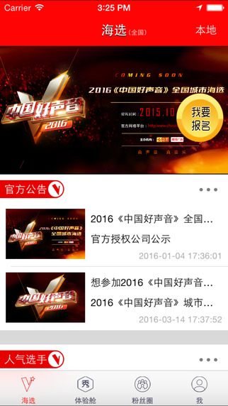 重點(diǎn)新聞、視頻、音樂、活動(dòng)、新聞、廣告推薦,用戶登陸伊始即可了解好聲音最火熱的信息。