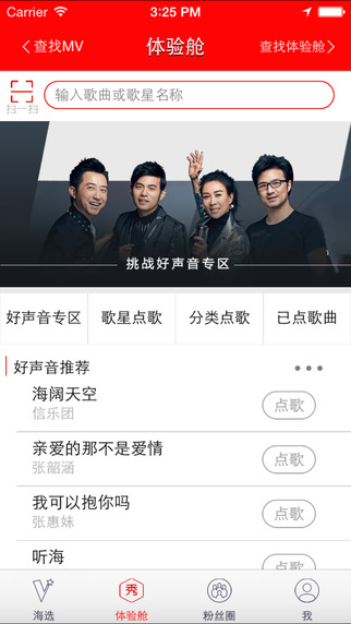 中國好聲音全曲收錄,用戶可在全曲首頁選擇喜歡的藝人歌曲進(jìn)行歌曲試聽、也可下載、分享。