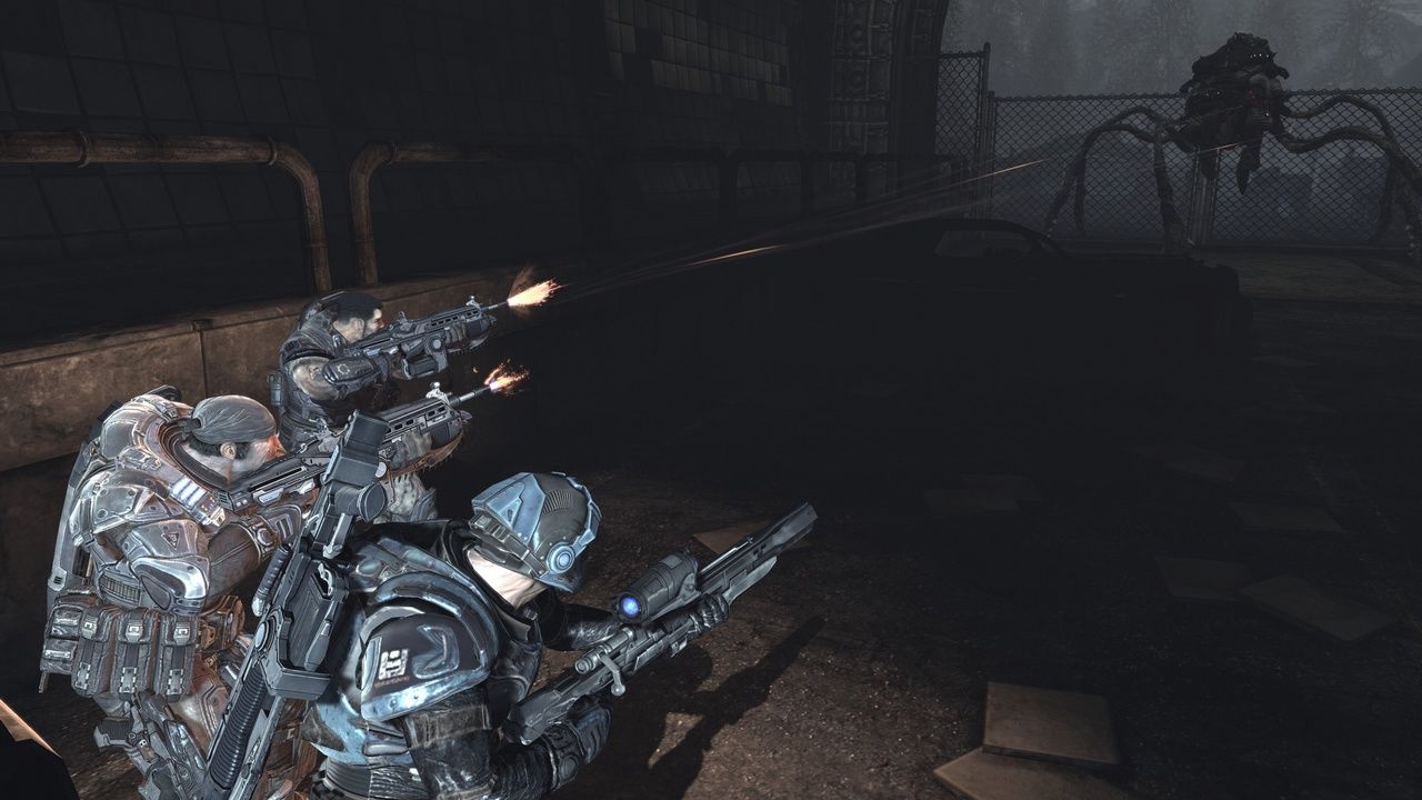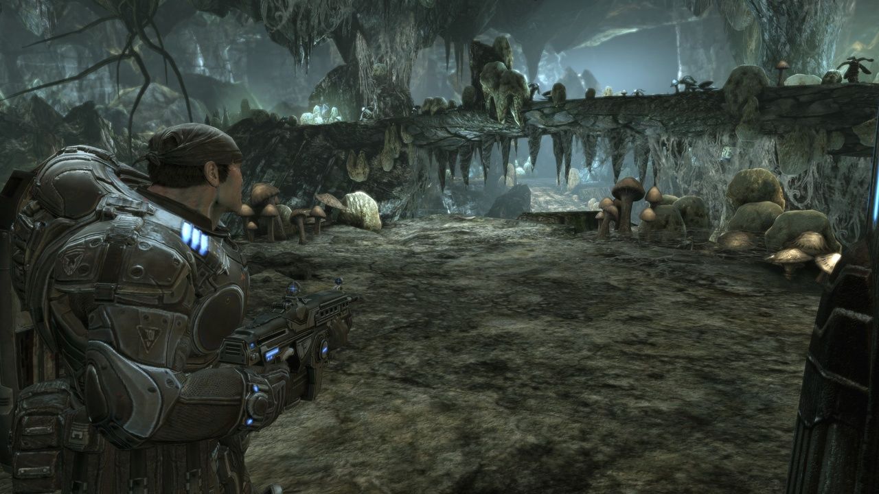從本關(guān)開始,游戲開始進(jìn)入一個小高潮,貌似也就是之前有試玩視頻的那段。游戲開始后轉(zhuǎn)身在梯子旁可以找到《鉆地機(jī)告示》,根據(jù)提示操作左邊的重機(jī)槍來清除天上的迫擊炮,此外按RB可以給機(jī)槍類武器加速散熱,以后別說我沒提醒過。之后有掠奪獸出現(xiàn),這家伙最好先把騎在它上面的獸族士兵干掉再射它。