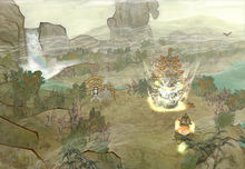 上邽城郊:此處是個(gè)小游戲,橫艾用法術(shù)召喚了一個(gè)孔明假人,用縮地之術(shù)吸引魏兵注意,好讓漢軍收麥。朝云的任務(wù)就是將魏兵引至橫艾處,要注意和魏兵保持一段距離,太近會(huì)被抓,太遠(yuǎn)魏兵會(huì)停下不動(dòng)。