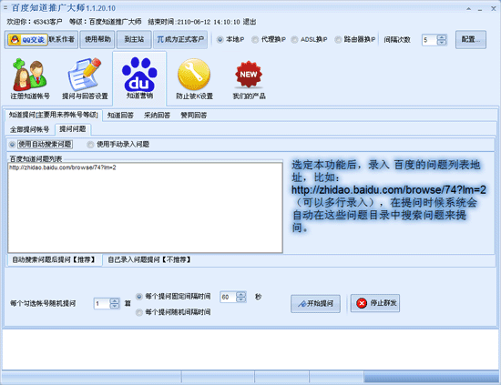 5、可以成百上千的管理知道帳號,大量養(yǎng)號;