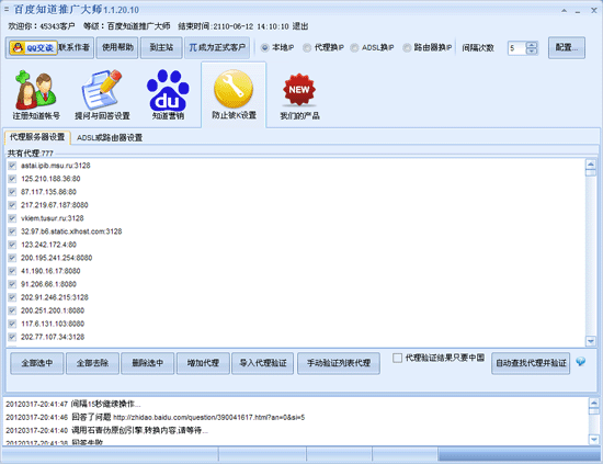 推薦客戶,每周都點擊一次“自動查到代理并驗證”來搜索新的代理,這個時間會比較長,大概40分鐘內(nèi)。