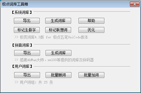 詞庫生成與維護:與詞庫維護相關(guān)的功能。如批量加、刪詞、導出用戶詞組、生成詞庫等。