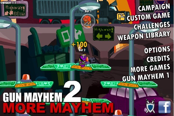 混亂大槍戰(zhàn)2游戲加載完畢后點擊CAMPAIGN(戰(zhàn)役模式)/CUSTOM GAME(普通模式)/CHALLENGES(挑戰(zhàn)模式)- 再點擊Easy Al - 然后點擊START(可點擊HUMAN PLAYER增加人物進行雙人游戲)即可開始游戲(選擇普通模式 - 再點擊CONTINUE兩次 - 然后點擊START即可開始游戲或者選擇挑戰(zhàn)模式 - 再點擊START即可開始游戲)