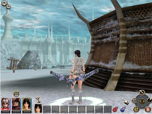 游戲操作:簡單方便,戰(zhàn)斗是只需按著鼠標(biāo)左鍵不放就可連續(xù)攻擊,點選屏幕下面的絕招圖標(biāo)就可施放威力強大的絕招。游戲視角提供2種設(shè)置,自由選擇。通過鼠標(biāo)滾輪,還可調(diào)節(jié)視角遠(yuǎn)近。缺點是 進出門的時候視角變化,有些不便。無法抬頭,看不到高處的景物,視角受到限制。