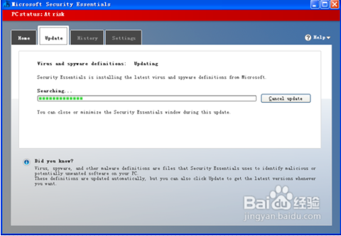 安裝成功后,MSE會提示你立即升級到最新的病毒庫并掃描計(jì)算機(jī)。
