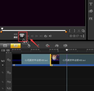 播放到你需要剪輯的位置的時候,點擊一下暫停播放。