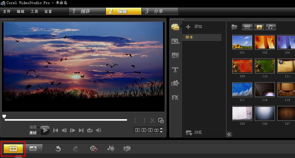 打開繪聲繪影,自動的新建了一個文件,我說得簡單些啊,直接在媒體里拉一個視頻在視頻軌。媒體庫里有視頻。。。。