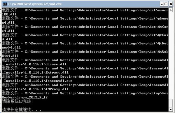 清除系統(tǒng)LJ.bat是一款DOS命令來(lái)做的一款系統(tǒng)清理小工具,可以有效的清除系統(tǒng)垃圾文件、緩存文件、比一些專業(yè)的優(yōu)化軟件更顯得專業(yè)。