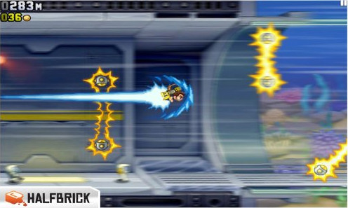 火箭飛人Jetpack Joyride是一款橫版酷跑游戲,游戲主角巴里(Barry)潛入了一座神秘的工廠,奪走了邪惡的科學(xué)家們正在研制的個人火箭飛行器,跟著他利用火箭飛行器逃離出這個神秘工廠吧。用飛行器上的機槍驅(qū)趕邪惡的科學(xué)家,上下飛行來避開工廠里各式各樣的障礙物,收集金幣,得到盡可能高的分數(shù)。火箭飛人安卓版也是一款畫面華麗的游戲,游戲節(jié)奏會隨著你活得的各種道具而發(fā)生變化,讓你在時快時慢的節(jié)奏中挑戰(zhàn)自己的反應(yīng)速度和決斷力。