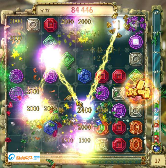 游戲的規(guī)則很簡單,鼠標操控,經(jīng)典的消除模式,上手度高。在規(guī)定的時間內(nèi),消除鑲有寶石的圖騰,達到指定的分數(shù)限制即可過關(guān)。游戲具備了流暢的控制手感,消除動畫的同時玩家也可以進行操作。(上手度)