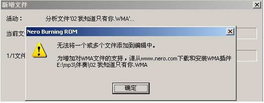 NERO支持的音頻文件有WAV、MP3、MPA等,但是如果不是標(biāo)準(zhǔn)的MP3格式或是其它音頻格式NERO的自動偵測文件功能就會提示文件類型出錯,如圖