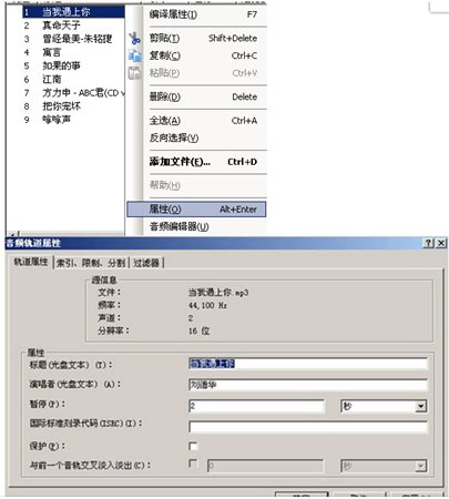 如標(biāo)題、演唱者以及與下首音樂之間的時間間隔(也就是暫停)都可以自動修改。