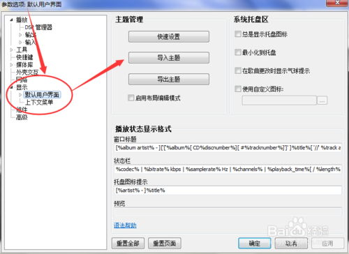 2、點開顯示---默認用戶界面,進行設(shè)置導(dǎo)入下載好的皮膚主題