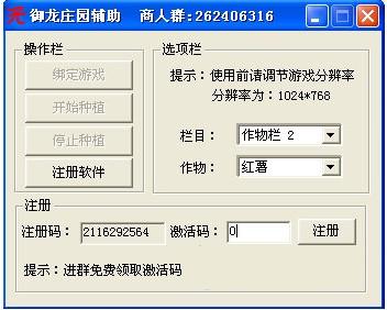 御龍莊園輔助是一款《御龍在天》游戲的莊園輔助工具,該御龍在天莊園輔助可以幫助玩家的游戲莊園自動收獲果實,自動種植植物,玩家只需加群就可以獲得激活碼,就能免費使用這款輔助了。