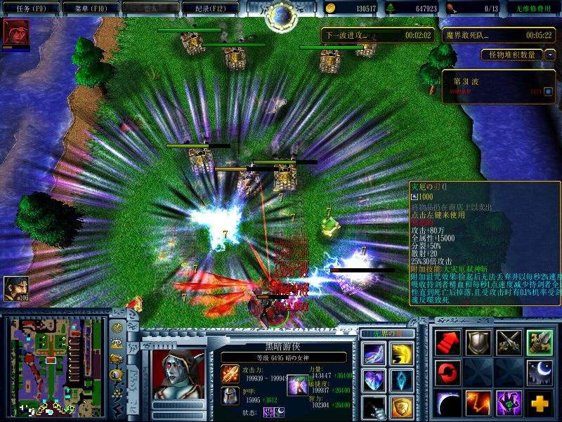 4、野人是可以不合成專屬武器而直接拿災(zāi)難之刃、無極軍刀,老版本的災(zāi)難之刃是扣屬性,而新版本的是加屬性,當(dāng)然要越早那越好,注意打?yàn)?zāi)難之神的時候拿寵物網(wǎng)套下,別帶鳳凰,我就失誤了1次,讓他搞出分身來了,我動作有點(diǎn)慢了,到了17波左右才拿到,拿到武器了,下面幾乎就度過了野人最弱的事情了,下面就使勁虐怪吧