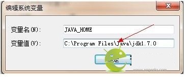 變量值為 C:\Program Files\Java\jdk1.7.0(即剛才的安裝路徑,視自己情況而定)