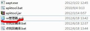 1、 將“re管理器.apk”拉進(jìn)apktool文件夾內(nèi),如下: